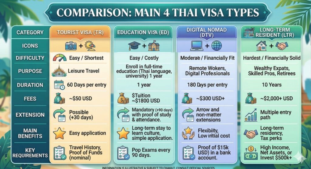 We've listed the realities of 4 Main VISA types + the acceptance & renewal processes, + facts influencers dont tell you.
